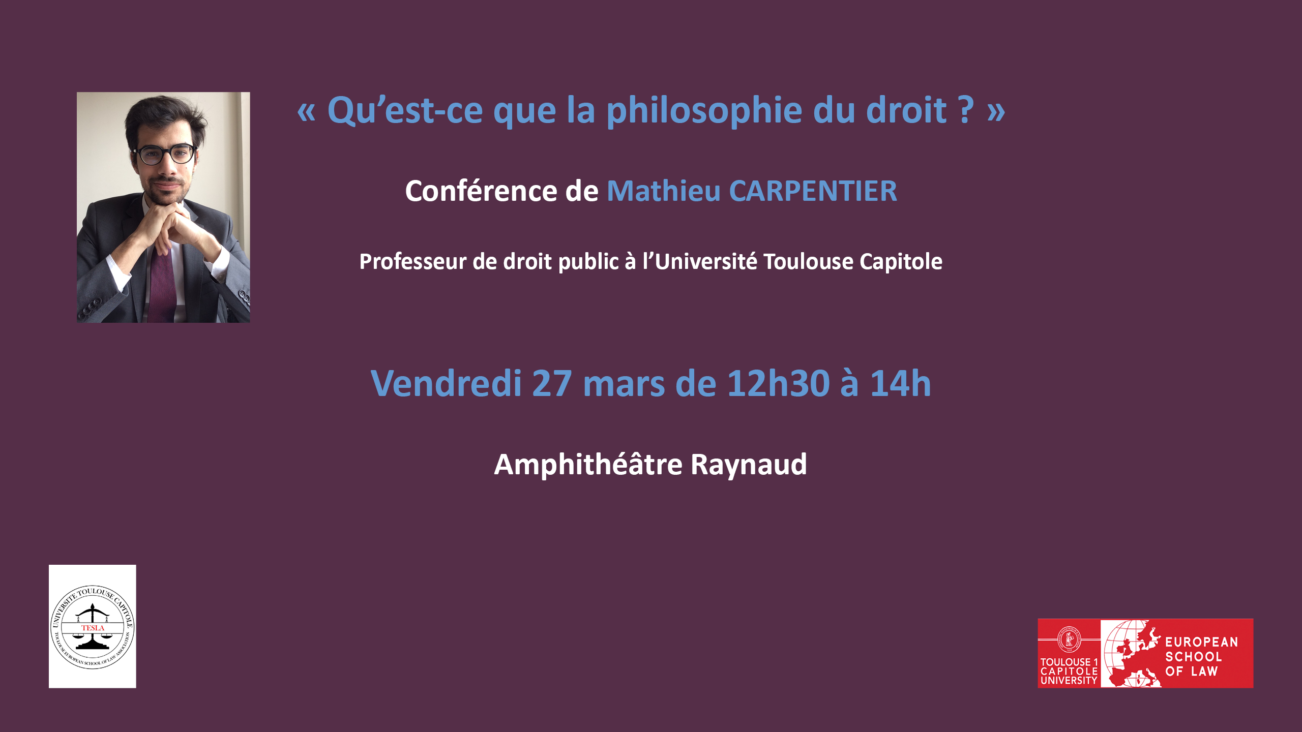 ANNULATION / "Qu'est-ce que la philosophie du droit ?", une conférence de Mathieu Carpentier