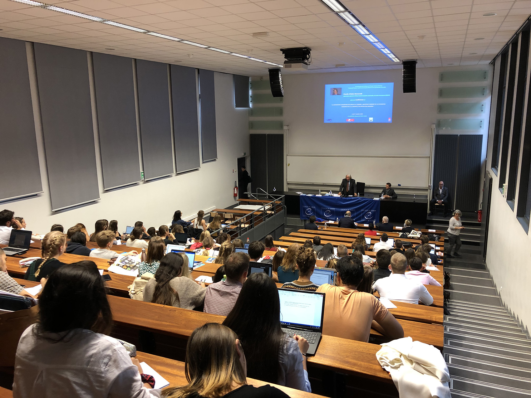 M. Marescotti, a donné une conférence intitulée "La Convention européenne des Droits de l'Homme, important rempart de la civilisation moderne face à la menace d'un moyen-âge moderne", avec M. David Sénat, avocat général à la Cour d'appel de Toulouse. Mme Alix-Marie Cabot-Chaumeton, procureure adjointe au Parquet de Toulouse et M. Thierry Pons, procureur adjoint de la République à Toulouse, ont également participé aux débats, de même que les professeurs Antoine Botton, directeur de l'Institut d'études judiciaires et Lukas Rass-Masson, directeur de la European School of Law.