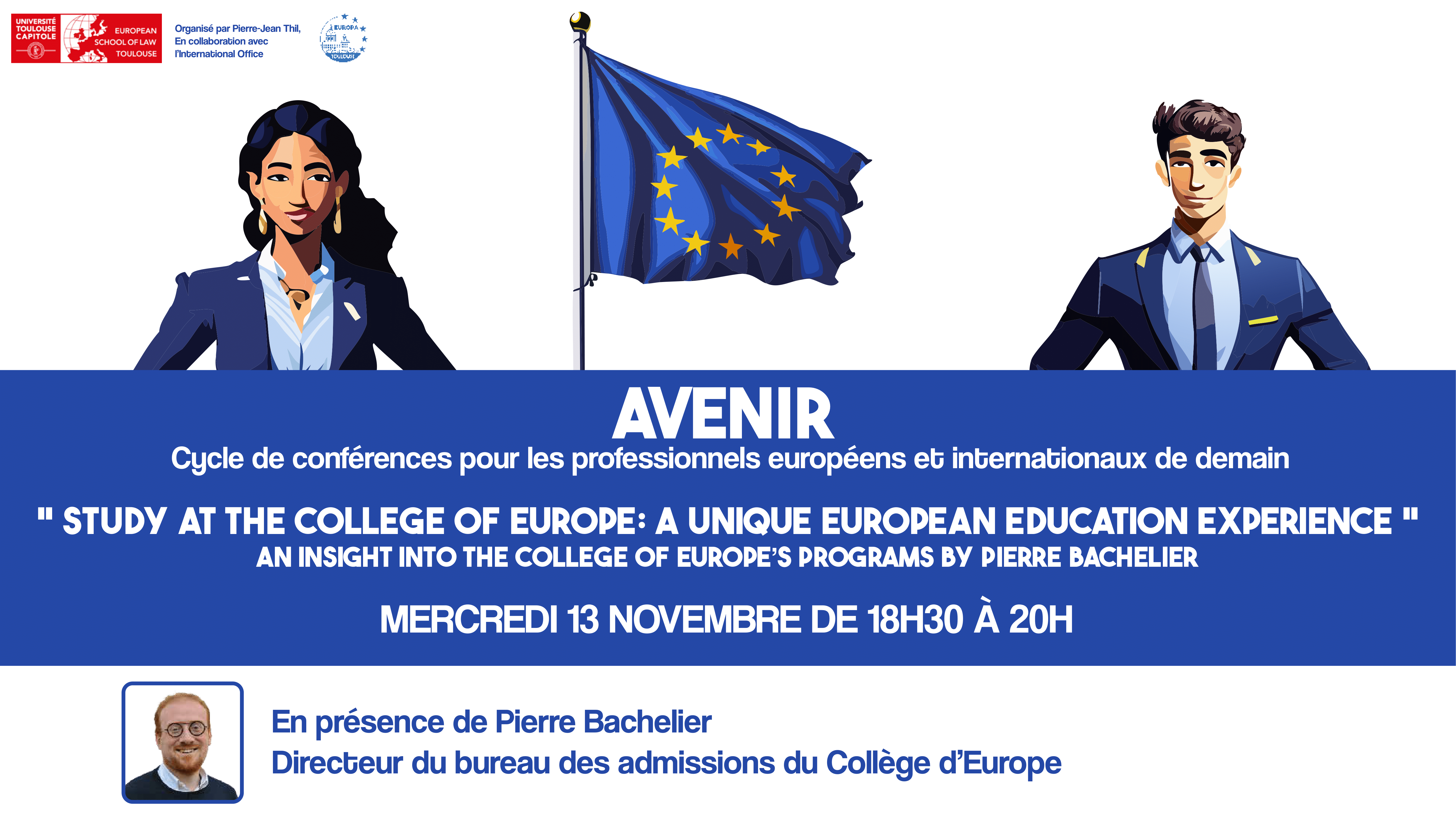 Le premier jalon sera une conférence donnée par Monsieur Pierre Bachelier, Directeur du bureau des admissions du Collège d'Europe.