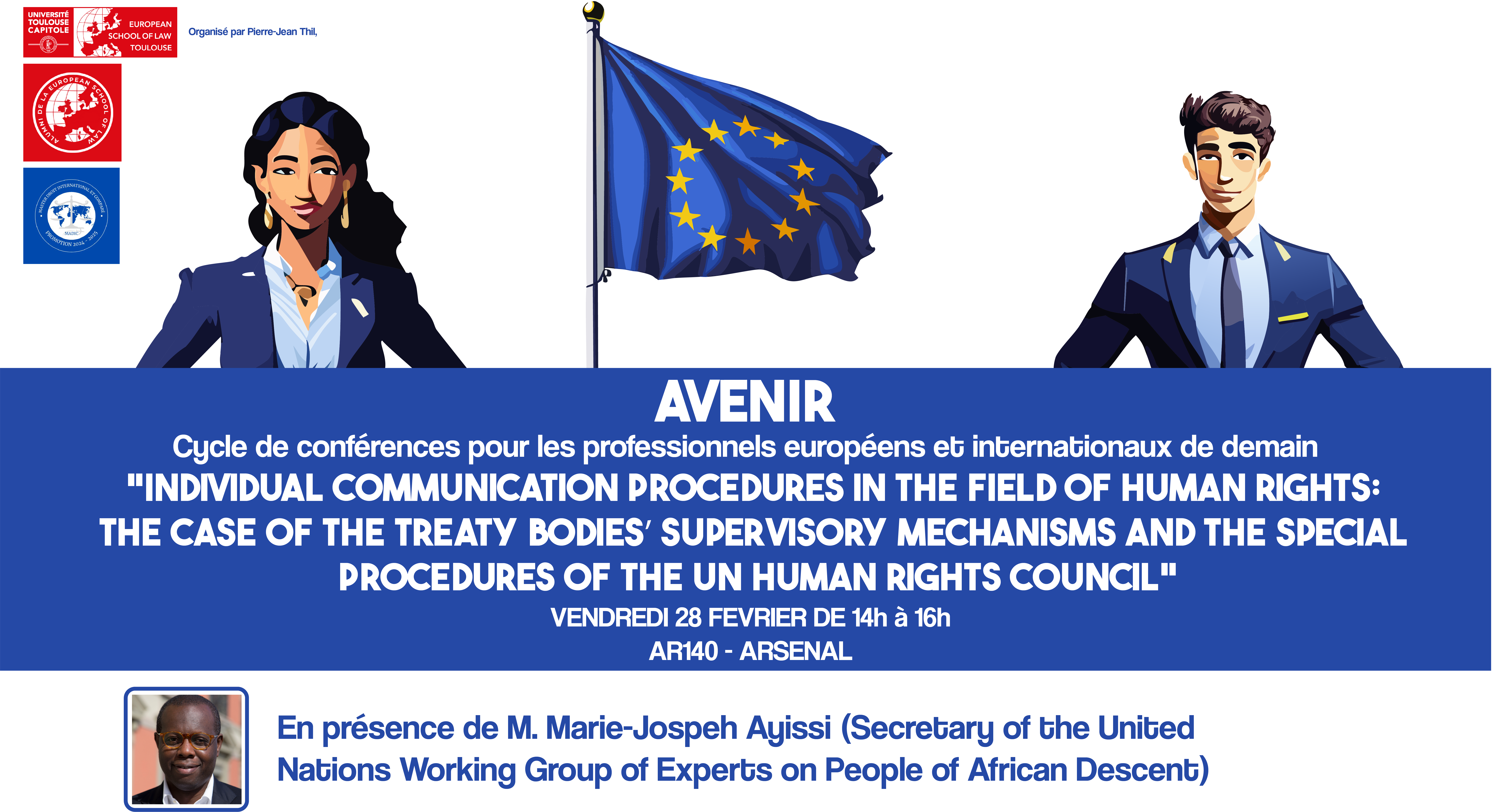 A l’occasion de sa venue à l’Université Toulouse Capitole, le 28 février prochain, M. Marie-Jospeh Ayissi: Secretary of the United Nations Working Group of Experts on People of African Descent interviendra sur la thématique des procédures internationales en matière de protection des droits fondamentaux.