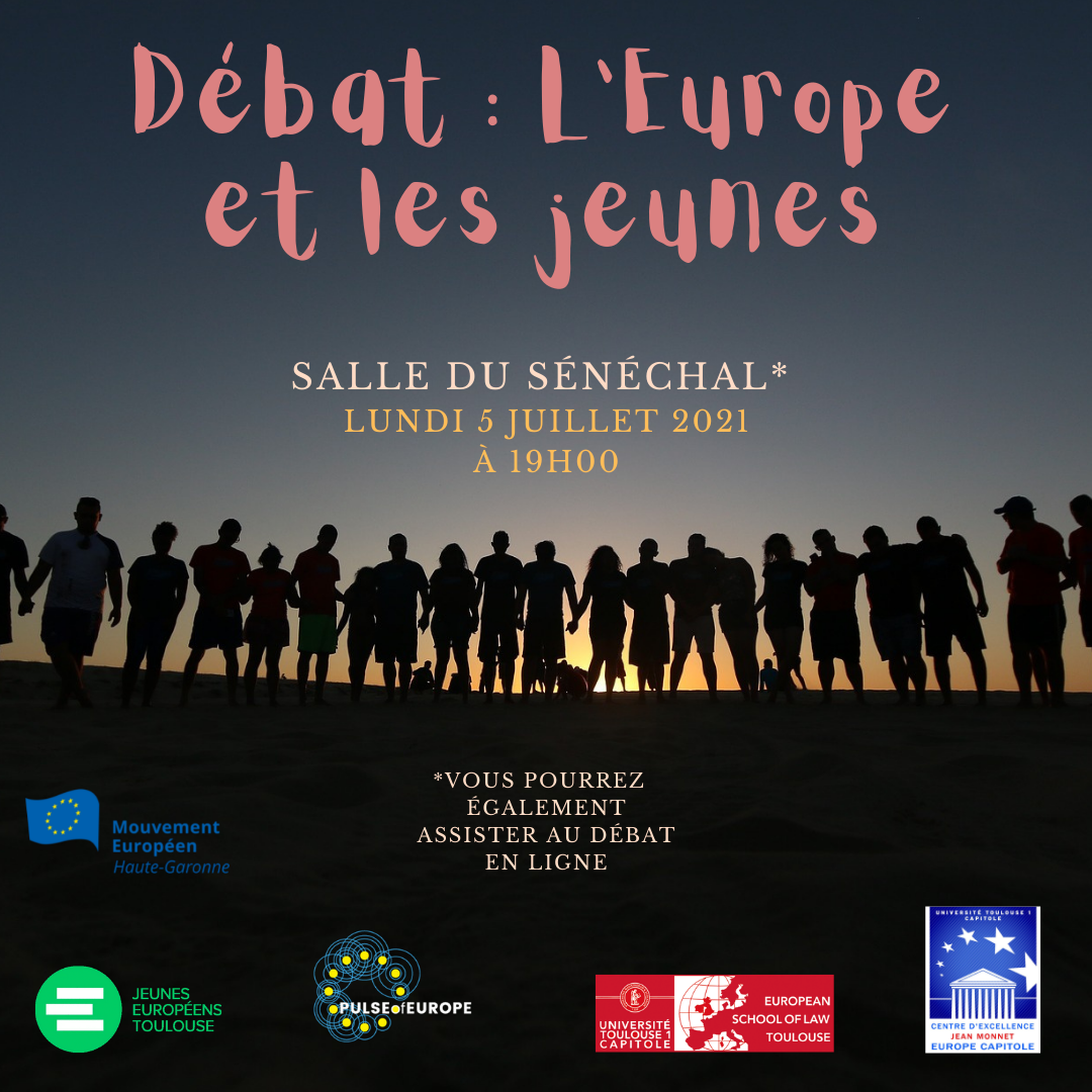 Le Mouvement Européen Haute-Garonne, les Jeunes Européens Toulouse, Pulse of Europe Toulouse, en partenariat avec la European School of Law Toulouse ont le plaisir de vous inviter à un débat autour de la question L’Europe et les Jeunes.