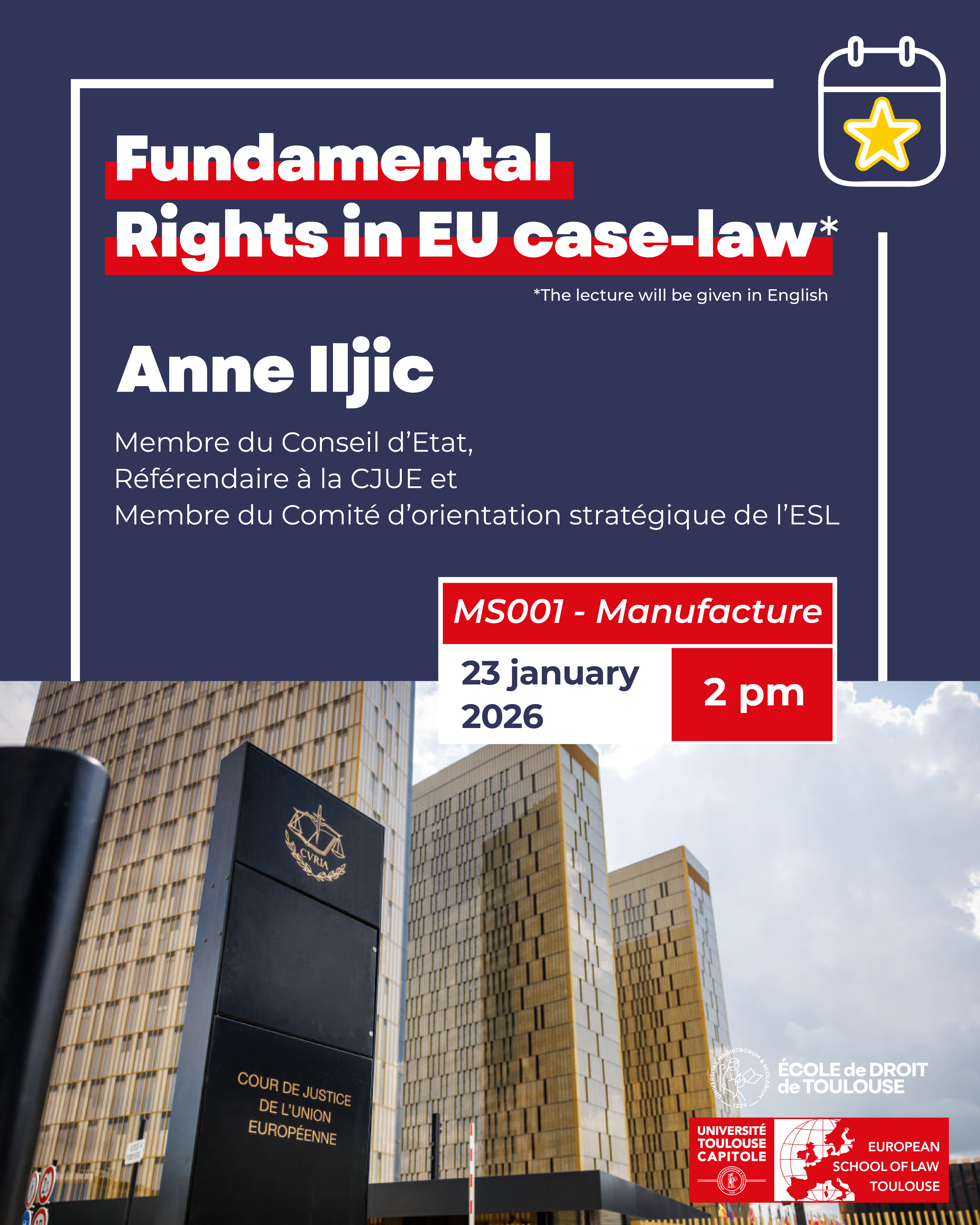 We are honored to announce that on January 23rd, the European School of Law will welcome Anne Iljic, Member of the Conseil d'Etat and Référendaire at the Cour de justice de l'Union européenne.