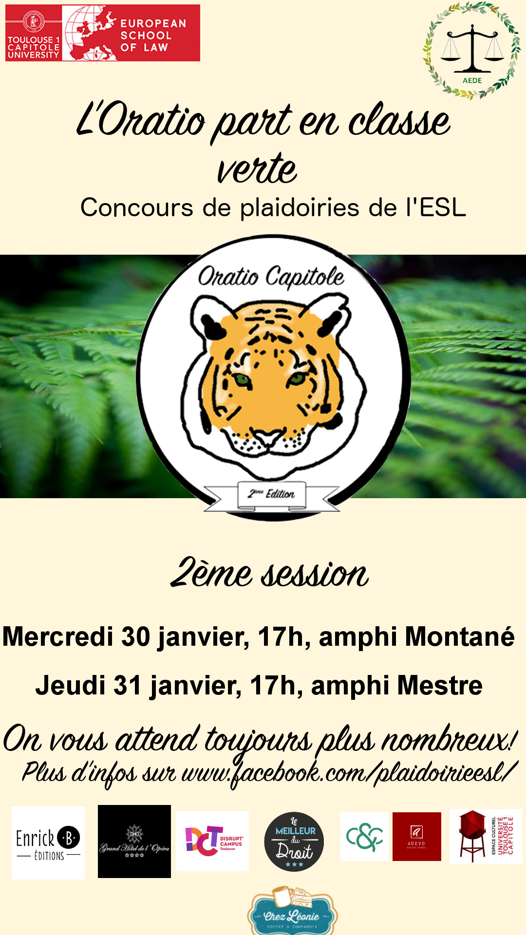 Deuxième session du Concours de plaidoirie de l'ESL, organisé par l'Association des Étudiants en Droit de l'Environnement, consacrée au droit de l'environnement, les mercredi 30 et jeudi 31 janvier 2019.